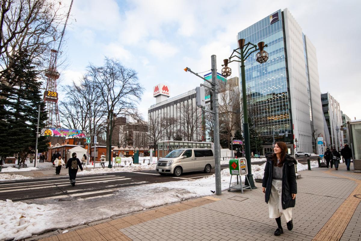 大通西3丁目歩道|ナギサとニナが駆け抜ける都会の交差点
